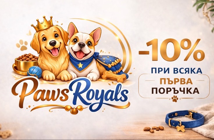 Започнете вашето приключение в света на PawsRoyals със специален подарък! Вземете -10% отстъпка от цялата количка при първата си поръчка. Защото всяка опашка заслужава да се маха от щастие!