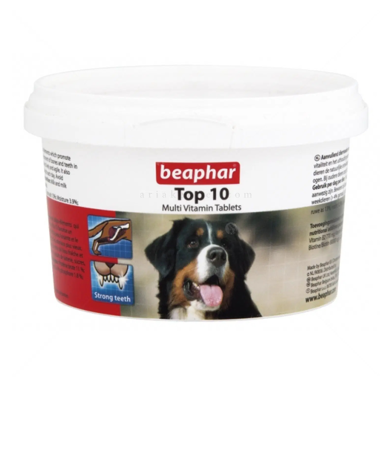 Мултивитамините на Beaphar Top 10 са хранителна добавка за кучета под формата на таблетки. Витамините, минералите и микроорганизмите, които съдържа Top 10 повишават жизнения тонус и съпротивителните сили на организма, мобилизират естествените сили, способстват правилното развитие на костите и зъбите на малките кученца, придават пищност на козината и блясък на очите. При по-възрастни кучета Top 10 способства за запазване на бодростта и гъвкавостта им. Съдържащият се в таблетките L-карнитин укрепва мускулите (в това число и сърдечния мускул) и спомага за натрупване на мускулна маса.