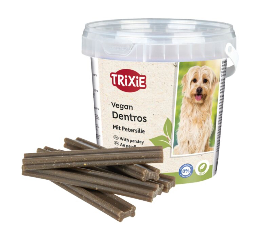 Зърнени храни, производни от растителен произход (от тях 2 % магданоз), зеленчуци, пропилен гликол, веган,без добавена захар. Съхранявайте на хладно и сухо място.