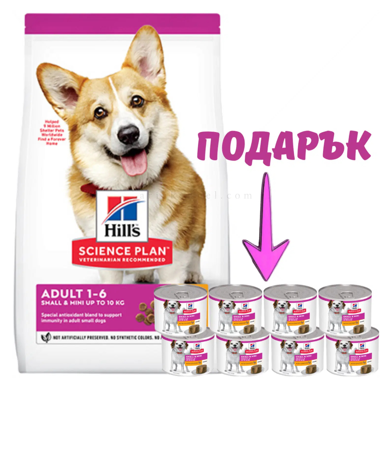 - съдържа специален микс от антиоксиданти за малки и мини породи за поддържане на имунитета през целия живот.