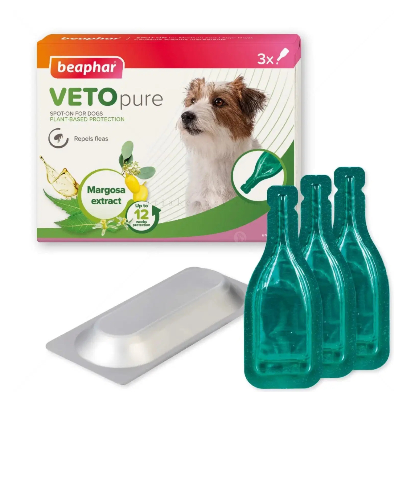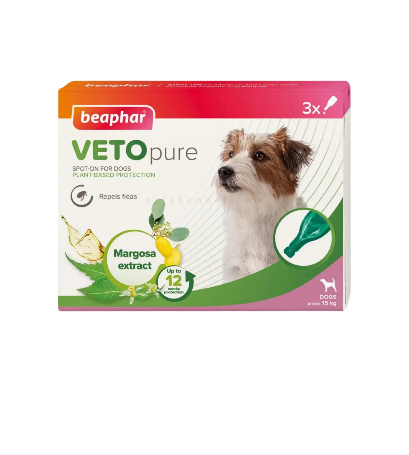 Противопаразитните пипети Beaphar Veto Pure Spot on Small Dog са ефективни срещу бълхи и са подходящи за кучета от дребни породи. Bio Spot On са специално разработени да отблъскват външните паразити. Течността съдържа екстракти от маргоза от нийм, дърво, известно със своите репелентни свойства срещу насекоми.