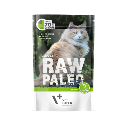 Както винаги Vet Expert ни поднасят тяхната уникална, висококачествена храна, но този път за нашите любими котки. Паучовете са в разфасовки от 100грама, съдържащи до 70 гр. дивечово месо на всеки 100 г. продукт. С високо съдържание на протеин, таурин, без глутен и консерванти.