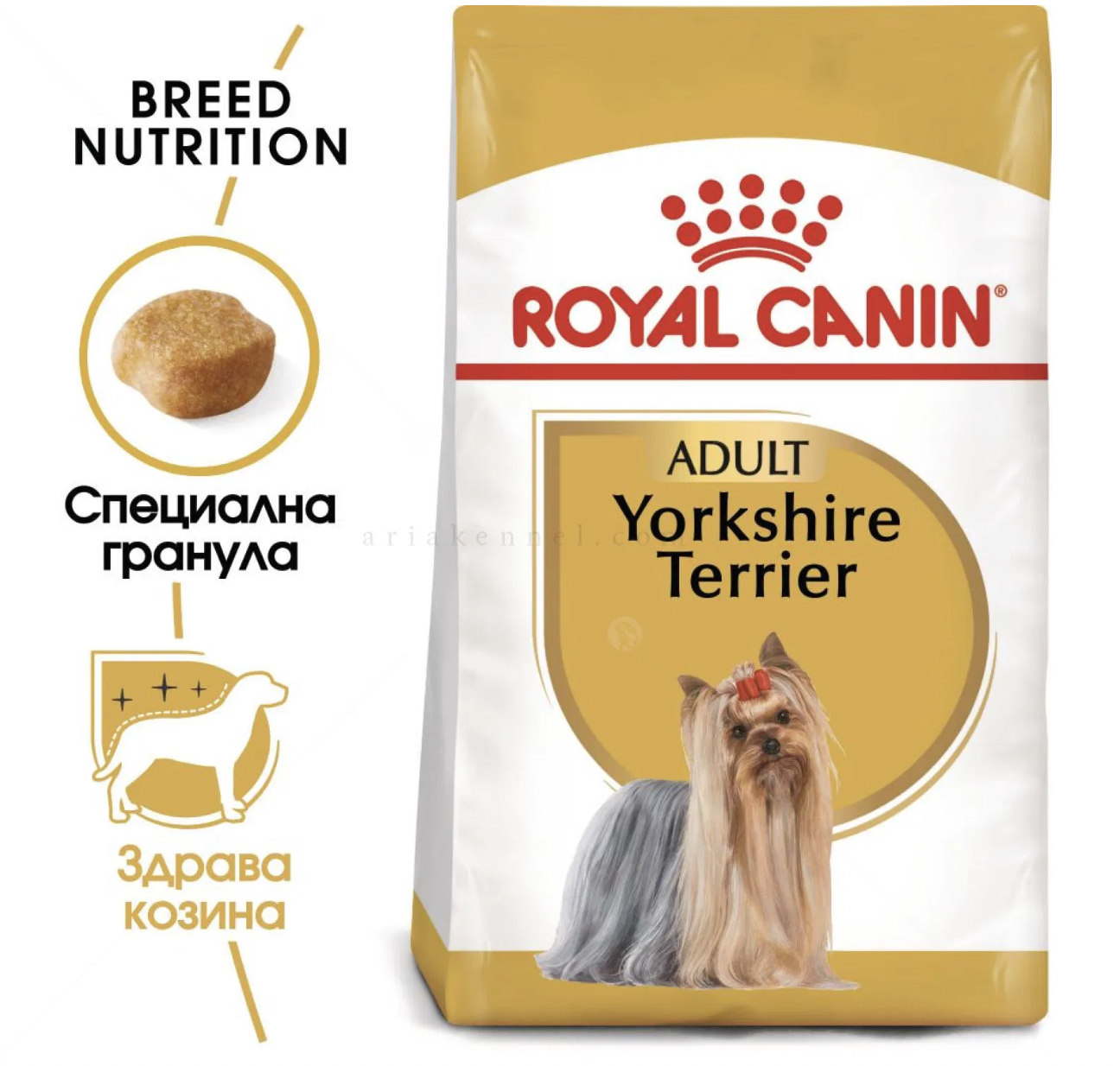 Храна, специално разработена за израстнали кучета от породата йоркширски териер на възраст над 10 месеца.
