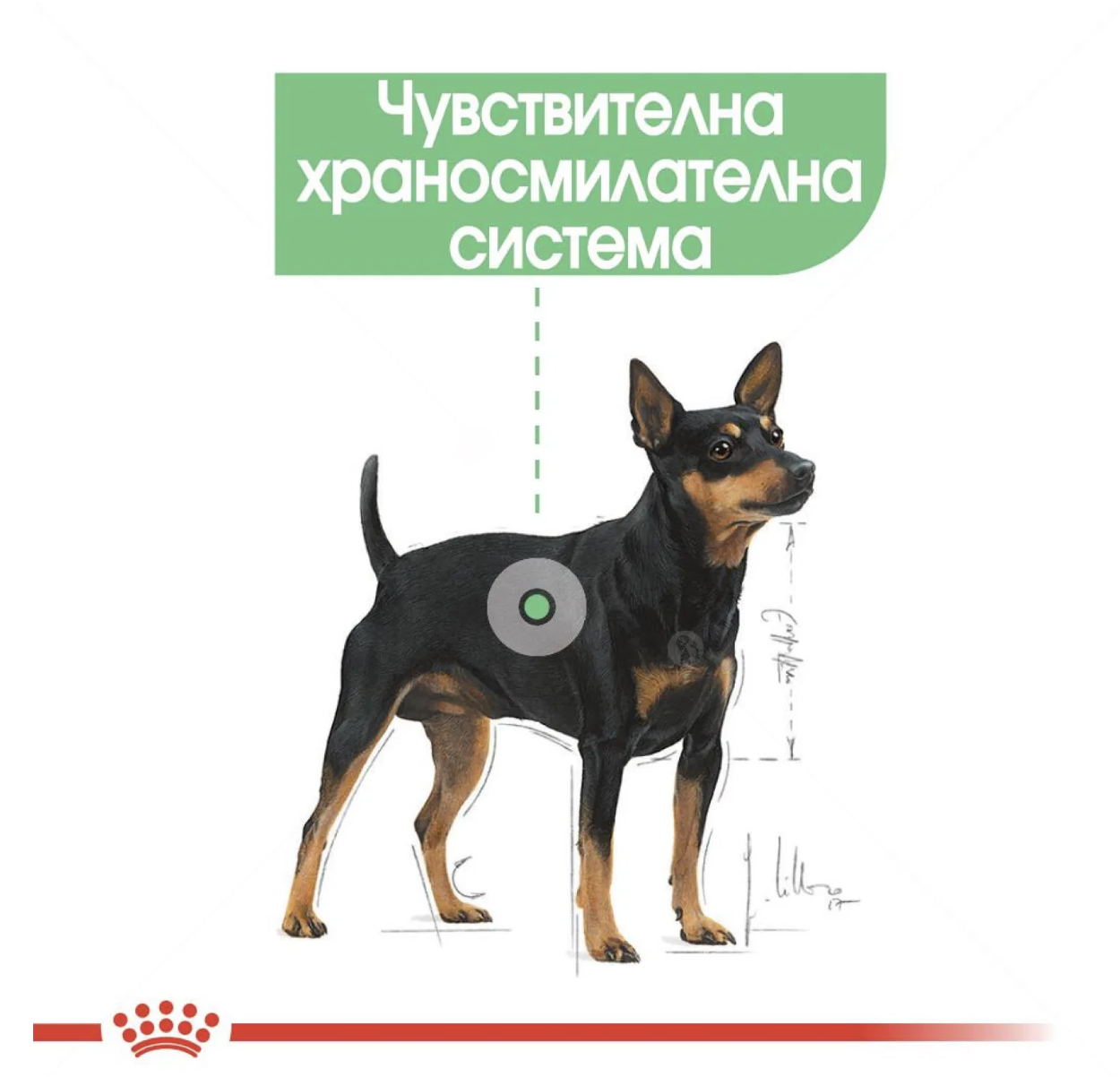 Суха храна, подходяща за кучета от дребни породи, предразположени към храносмилателни чувствителности, на възраст над 1 година.