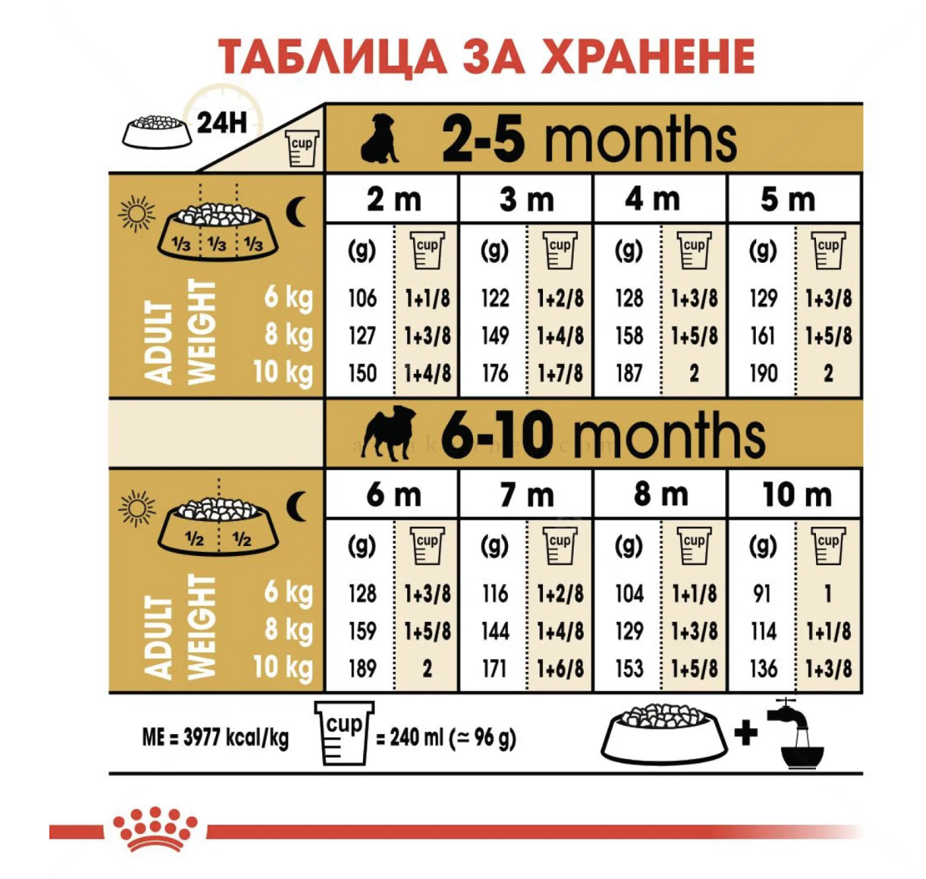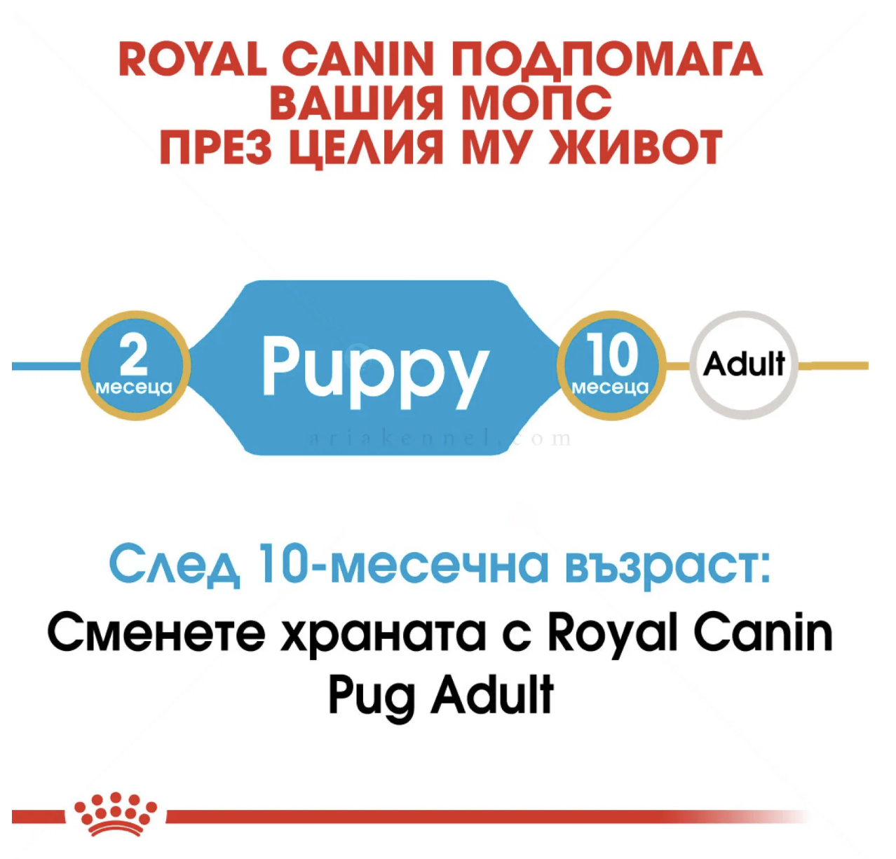 Храна, специално разработена за подрастващи кученца от породата мопс на възраст от 2 до 10 месеца.
