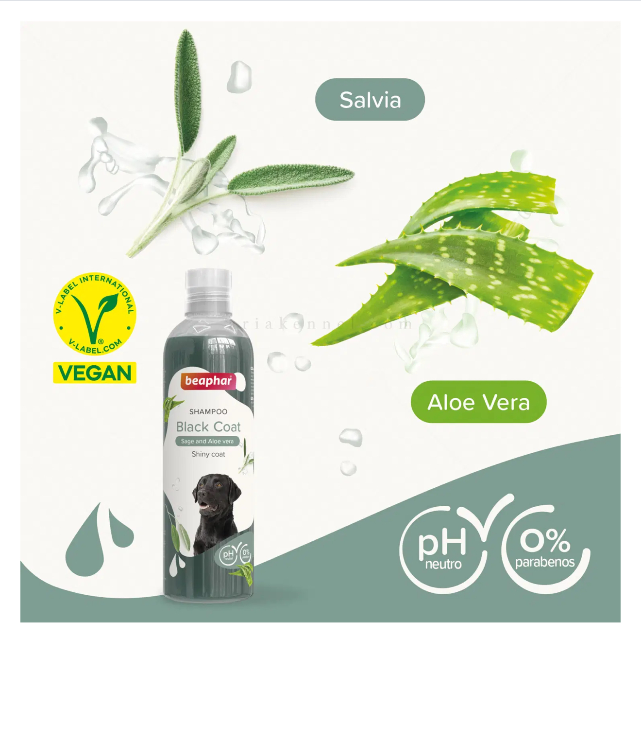 Шампоанът Beaphar Black Coat е мек и щадящ шампоан, специално предназначен за кучета от всички породи с черна или тъмна козина. Той внимателно почиства кожата и козината. Съдържа алое вера за поддържане на здравословен и естествен баланс на влагата на кожата. Това прави козината лесна за разресване и придава на Вашето куче добре поддържан и блестящ вид. Шампоанът е pH неутрален и затова е подходящ за кучета с чувствителна кожа.